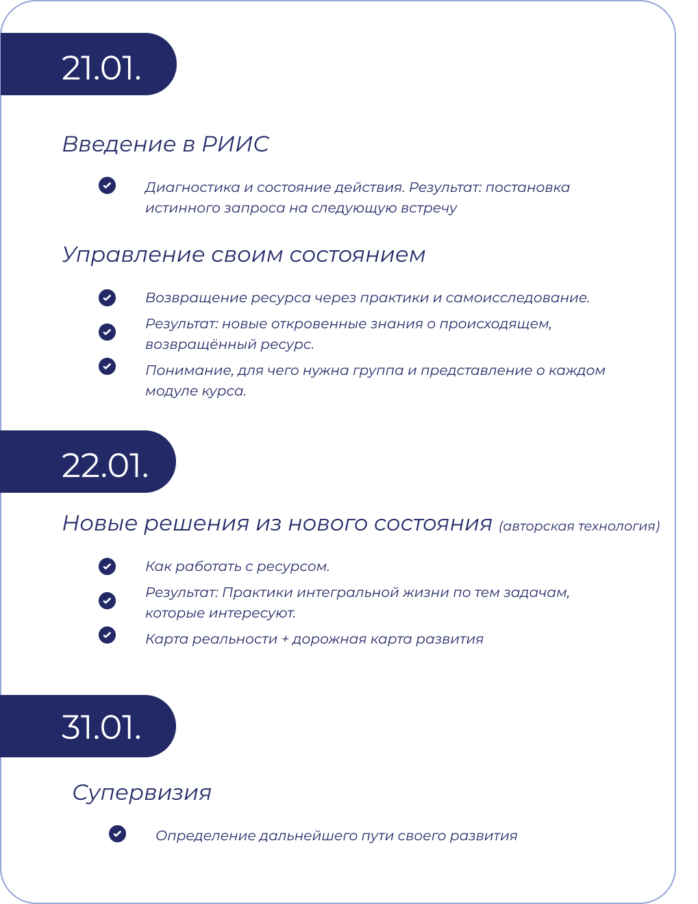 Каждый модуль обучения по треку развития, для реальных изменений, через разные точки входа